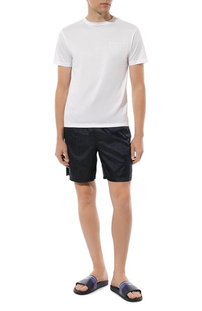 Синие шлепанцы выполнили из прочной гибкой резины, которая не боится влаги и легко очищается от загрязнений. Нескользящую подошву дополнили анатомической стелькой, поддерживающей свод стопы и снижающей нагрузку на суставы. Перемычку украсили геометричным узором, в котором зашифровали знаковую для марк и литеру Z.