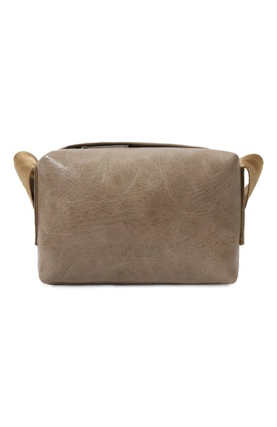 Ума Ванг выбрала для создания темно-бежевой сумки мягкую фактурную кожу, которая устойчива к появлению царапин и потертостей. Лаконичный дизайн модели с утрированно широким плечевым ремнем подчеркивает простая прямоугольная форма. В аксессуар поместятся портмоне, смартфон и губная помада.