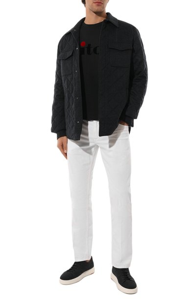 Белые прямые брюки со стрелками станут хорошим компаньоном для вещей любой гаммы. Для пошива модели мастера марки, основанной Стефано Риччи, использовали мягкий прочный хлопок, который не препятствует циркуляции воздуха. Чтобы изделие комфортно садилось по фигуре, пояс дополнили эластичными вставками по бокам.