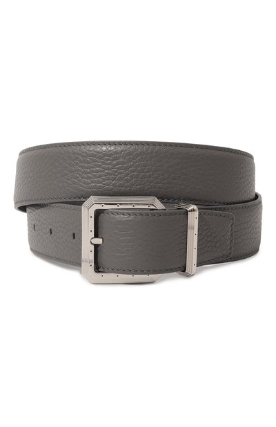 Серый ремень мастера марки выполнили из прочной крупнозернистой кожи, тщательно выделанной вручную до особой мягкости и пластичности. Модель застегивается фигурной полированной пряжкой, которой вторит наконечни к. Такой аксессуар гармонично впишется в образ как с брюками, так и с джинсами.