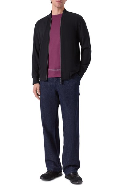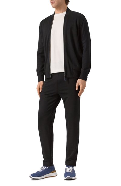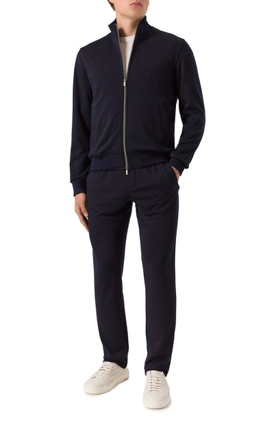 Лаконичная толстовка с воротником-стойкой может стать достойной альтернативой ветровке в прохладную погоду. Модель выполнили из приятного на ощупь шерстяного трикотажа, который поддерживает комфортный микроклимат. Для производства материала бережно отобрали только мягкие волокна, очистив их вручную от грубого ворса.