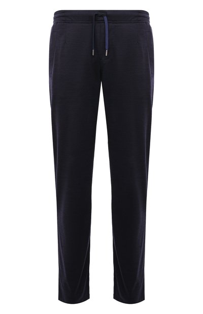 Синие брюки выполнили по канонам стиля athleisure. За комфортную посадку, характерную для спортивной одежды, отвечают прямой крой и широкий пояс-кулиска. А за leisure — мягкая тонкая шерсть. Приятный на ощупь легкий материал почти не ощущается на коже и сохраняет оптимальный для тела микроклимат. Наши стилисты включили модель в расслабленный образ с кремовым поло, бомбером и кроссовками.