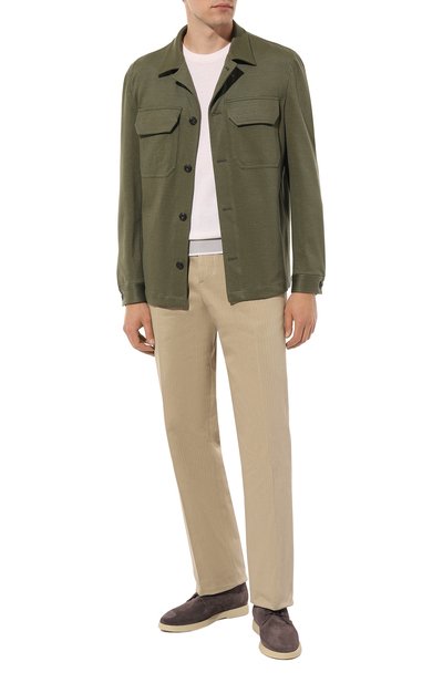Для создания дезертов сдержанного песочного оттенка мастера марки использовали мягкую замшу. Этот материал тщательно выделали, чтобы он стал эластичнее, не утратив природной прочности. Единственным декором пары на резиновой сплошной подошве стала миниатюрная серебристая деталь на боковой панели.