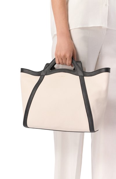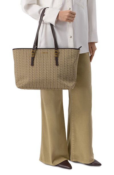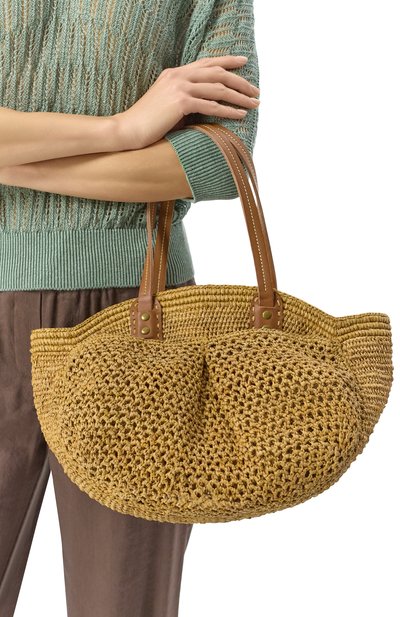 Сумку Nantucket сплели шевронным узором из узких лент кожи буйвола. Длины двух ручек модели хватит, чтобы носить аксессуар на плече. Внутри — фирменный старинный медальон с изображением святого Христофора.