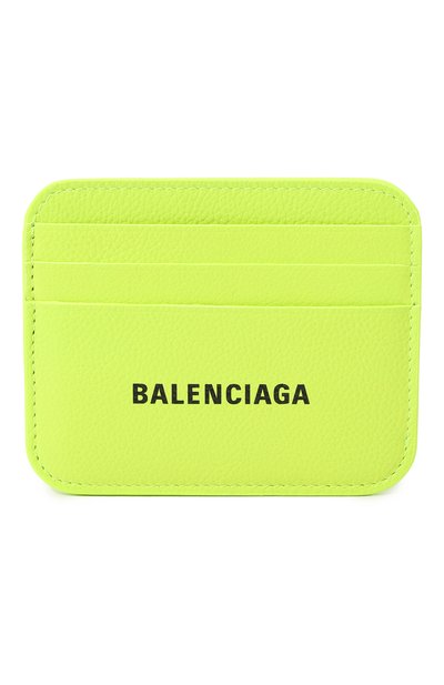 Для изготовления картхолдера неоново-салатового оттенка мастера марки использовали мягкую пластичную кожу. Футляр с шестью слотами для кредитных карт и центральным открытым карманом для чеков декорировали черным контрастным логотипом бренда.