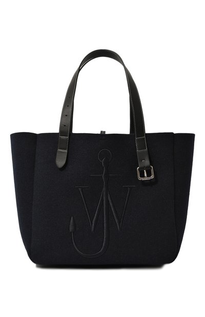 Для создания темно-синей сумки Belt с двумя длинными регулируемыми ручками, напоминающими ремни из матовой кожи, использовали прочный, стилизованный под войлок текстиль, из переработанного полиэстера. Аксессуар украсили крупной вышивкой в виде якоря, составленного из инициалов Джонатана Андерсона. Внутрь поместятся бумаги формата А4, бутылка воды, кошелек и смартфон.