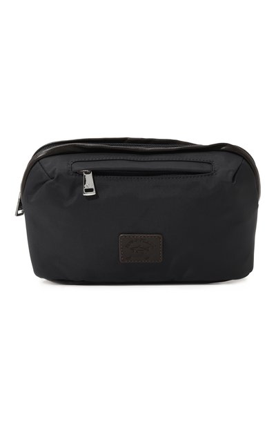Небольшую темно-синюю сумку выполнили из прочного непромокаемого текстиля. Регулируемый слайдером ремень позволяет носить изделие как на поясе, так и как кросс-боди. Внутрь аксессуара поместятся кошелек и ключи, а в наружные карманы можно положить смартфон. Модель декорировали брендированным патчем на передней панели.