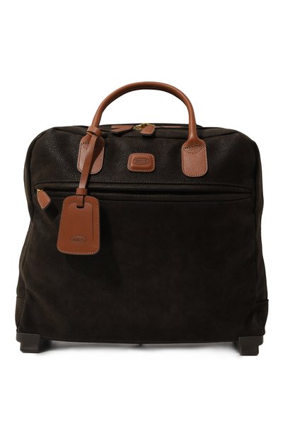 Темно-коричневый чемодан из прочного фактурного текстиля, стилизованного под замшу, идеально подойдет для коротких командировок. Аксессуар с отделкой из мягкой кожи коньячного оттенка дополнили двумя отделениями, в которые поместятся бумаги формата А4 и ноутбук диагональю 14 дюймов. Багаж удобно перемещать с помощью двух бесшумных колес и телескопической ручки или, закрепив на ручке большого чемодана (для этого сзади предусмотрели шлевку).