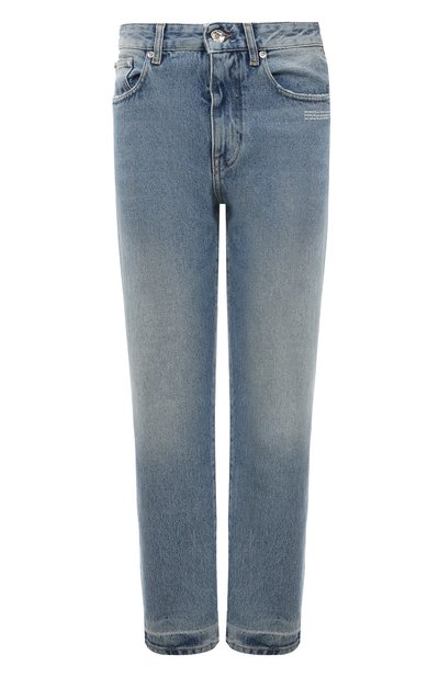 Слегка укороченные синие джинсы прямого кроя выглядят так, словно любимую вещь удлинили, расправив отвороты. Такую иллюзию формируют затемненные участки по краям брючин, гармонирующие с потертостями и заломами, которые получились максимально естественными. Изделие с посадкой на талии выполнили из плотного хлопка.