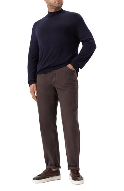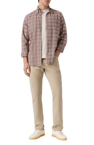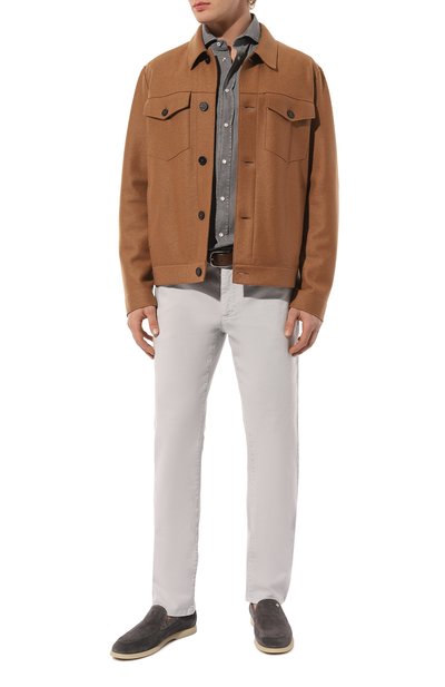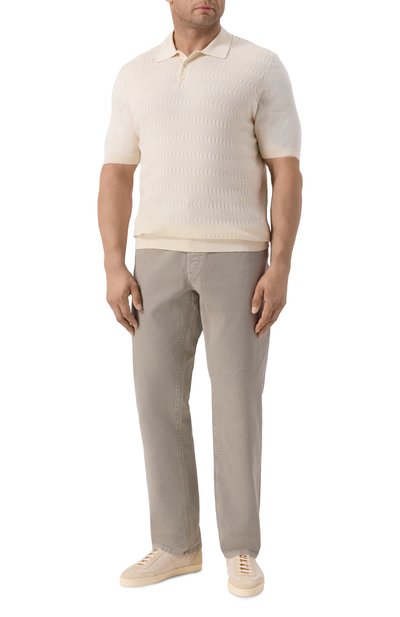 Прямые джинсы, окрашенные в готовом виде, органично дополнят образ любой сложности, например, с поло, кардиганом и слипонами. Модель из легкого денима плотностью 9,1 унции украсили вышитой эмблемой на монетном кармане, которую повторили в виде тиснения на брендированном кожаном патче сзади.