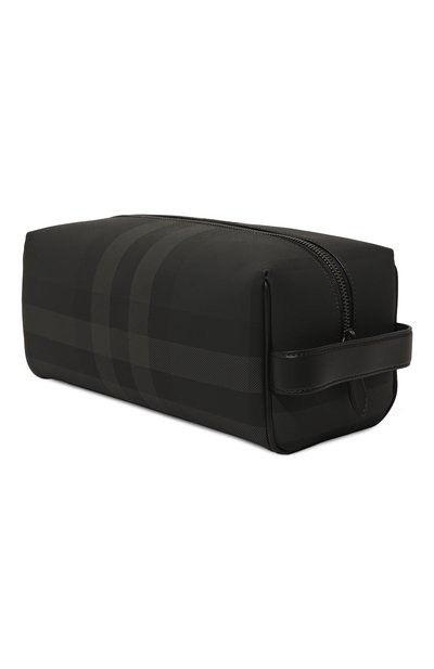 Несессер черного цвета громко заявляет о своем происхождении: на передней панели есть крупный контрастный принт в виде логотипа марки. Мастера бренда выполнили аксессуар из технической ткани с плотным переплетением нитей. Для создания короткой боковой ручки выбр али прочную кожу в тон.