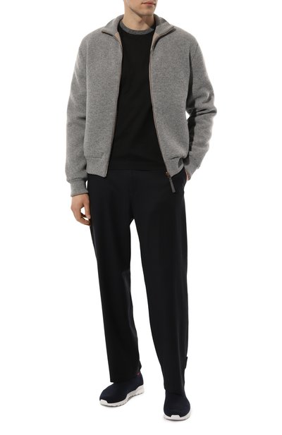 Дизайнеры марки, основанной Брунелло Кучинелли, адаптировали кроссовки для поздней осени. Верх выполнили из эластичного шерстяного трикотажа, а его терморегулирующие свойства усилили теплой внутренней отделкой. Чтобы обувь на широкой, но почти невесомой подошве прослужила дольше, основание шнуровки изготовили из прочной кожи, а задник укрепили лентой грогрен.