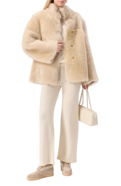 Дизайнер марки, основанной супругами Сантони, адаптировал синие ботинки Yalta к холодной погоде. Модель утеплили внутренней отделкой из стриженой густой овчины, которая хорошо сохраняет тепло. Для изготовления очищенной от любого декора пары использовали мягкую фактурную замшу.
