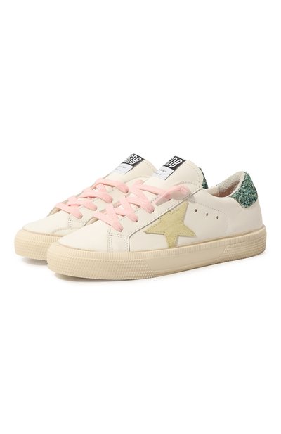 Наравне с состаренной подошвой высокие и низкие кеды Golden Goose Deluxe Brand отличают аппликации в форме звезд. Играя на контрасте с фактурой и цветом основного материала, дизайнеры создают этот декор из однотонной кожи или замши: матовой или металлизированной.
