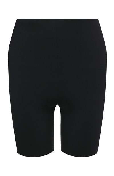 Базовый цвет и однотонный дизайн делают черные шорты максимально лаконичными. Мастера марки, основанной Джил Сандер, выполнили велосипедки из мягкого материала. В его составе соединили гладкий нейлон и стрейчевые волокна, поэтому такое изделие хорошо тянется и комфортно облегает фигуру.
