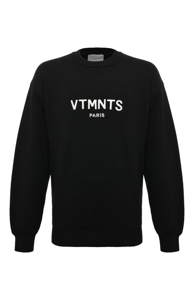 Черный свитшот громко заявляет о своей принадлежности бренду при помощи контрастного логотипа, вышитого спереди шелковистой белой нитью. Для изготовления модели вместо привычного хлопка использовали тонкую мягкую шерсть. Материал хорошо сохраняет тепло и не раздражает кожу, поэтому изделие комфортно носить на голое тело.