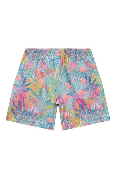 Плавки-шорты с неоновым камуфляжным принтом мастера марки сшили из прочного шелковистого полиэстера, который быстро сохнет и не выгорает на солнце. Модель дополнили сетчатой внутренней вставкой, поэтому она не прилипает к ногам во время купания, а за удобную посадку на талии отвечает регулируемый пояс-кулиска.