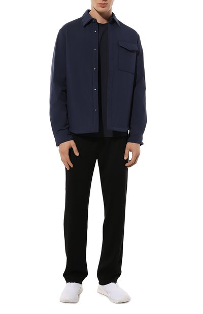 Команда марки раскроила темно-голубую куртку по лекалам рубашки, выбрав для изготовления тонкий и вместе с тем прочный непромокаемый текстиль. Этот материал с плотным переплетением ультратонких волокон не продувается ветром, поэтому в такой модели с отложным воротником и крупным накладным карманом с клапаном будет комфортно в непогоду.