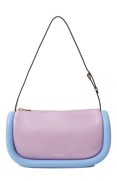 Джонатан Андерсон подчеркнул вытянутую форму сиреневой сумки The Bumper Baguette широким объемным кантом насыщенного голубого оттенка. Для изготовления модели с регулируемой по длине ручкой использовали прочную мелкозернистую кожу, отполированную до матового блеска. Внутрь поместятся смартфон, картхолдер и ключи.
