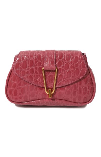 Для пошива миниатюрной структурной сумки Himma дизайнеры марки выбрали прочную глянцевую кожу, тисненую под экзотическую. Модель с плавными округлыми линиями дополнили откидным клапаном, который застегивается на поворотный замок с пряжкой в виде фирменного плектра. В аксессуар со съемным плечевым ремнем поместятся смартф он, ключи и помада.