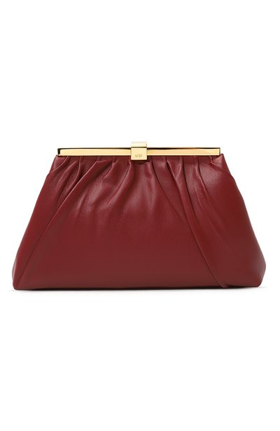 Для изготовления клатча Jeanne глубокого бордового оттенка Алессандро Дель Аква выбрал мягкую мелкозернистую кожу. Ее деликатный блеск добавляет выразительности небольшим складкам. Внутрь модели, закрывающейся золотистым рамочным замком, поместятся смартфон, картхолдер и ключи.
