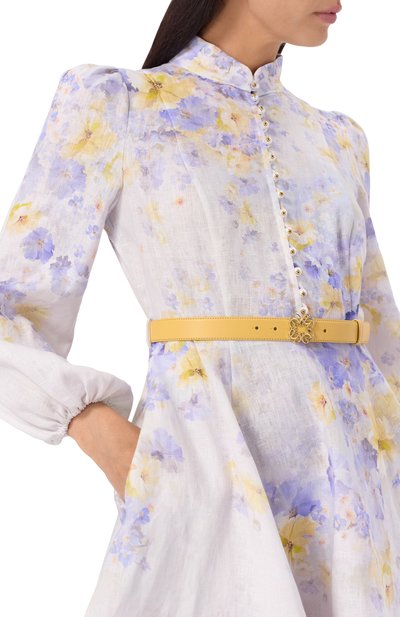 Ремень классической ширины выполнили из гладкой кожи белого цвета. Этот плотный материал тщательно выделали, сбалансировав гибкость и природную прочность. Аксессуар застегивается кобурной пряжкой Oval D, полностью покрытой стразами двух оттенков.
