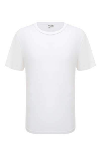Базовую белоснежную футболку без декора сшили из мягкого хлопкового джерси. Для производства материала отобрали длинные тонкие волокна, поэтому он получился приятным на ощупь, прочным и эластичным. Изделие из такого трикотажа комфортно садится по фигуре и долго сохраняет безупречный вид.