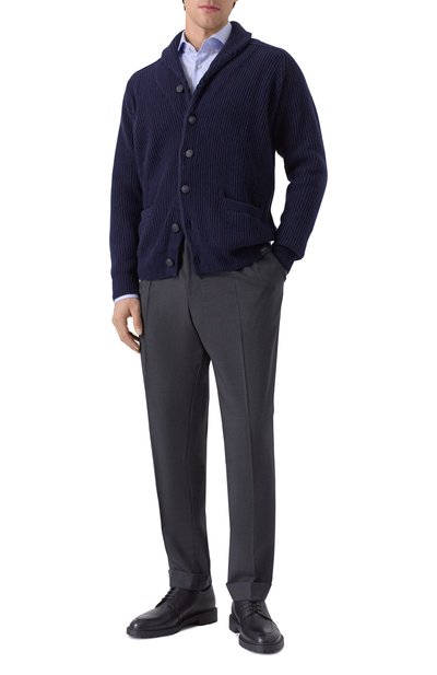 Светло-голубая сорочка — удачное вложение в офисный гардероб: такая модель с легкостью находит общий язык с костюмами разной гаммы. Изделие полуприталенного кроя выполнили по проверенным временем лекалам, обеспечив точную посадку по фигуре. Для пошива использовали тонкий плотный хлопок.