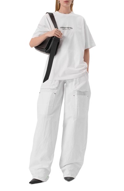 Свободные пляжные брюки с эластичным поясом почти не скрывают тело. Боковые разрезы полностью обнажают ноги при каждом шаге, а фирменный ажурный трикотаж, больше похожий на кружево, делает модель полупрозрачной. Струящийся материал с узором в оттенках белого и слоновой кости выполнили из микса шелковистой вискозы с купро и усилили нитями полиэст ера.