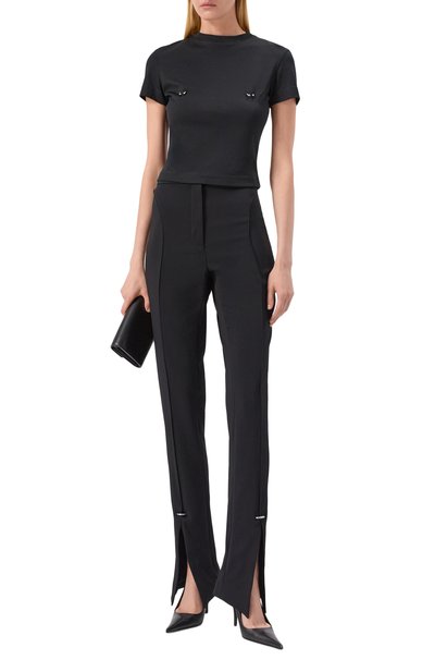 Базовая черная футболка получилась комфортнее и практичнее обычной. Для пошива модели вместо привычного хлопка использовали шелковистый полиамид с добавлением большого процента стрейчевых волокон. Изделие из такого материала плотно облегает фигуру, не ограничивая свободу движений, не мнется и долго сохраняет безупречный вид.