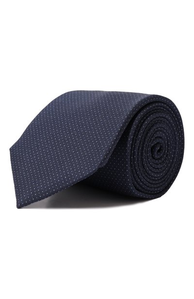 Для изготовления темно-синего галстука с графичным узором на несколько тонов светлее основного цвета мастера марки использовали плотный матовый шелк. Детали многократно отутюжили, а шов сзади сделали вручную, поэтому изделие хорошо держит вертикаль и не перекручивается.