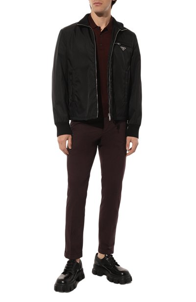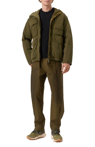 Зауженные брюки с вытачками в области колен дополнили четырьмя карманами. Для создания модели со средней посадкой использовали эластичный хлопковый твил.