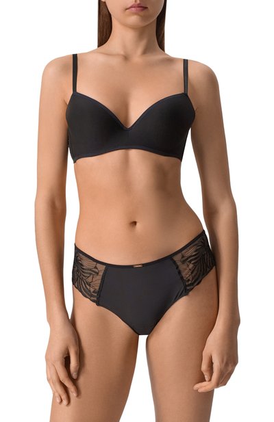 Для пошива серого меланжевого бюстгальтера с мягкими треугольными чашечками мастера марки использовали нежный материал на основе дышащего модала и прочного эластана. Цвет черных регулируемых бретелей поддерживает широкий пояс, украшенный спереди логотипом бренда.