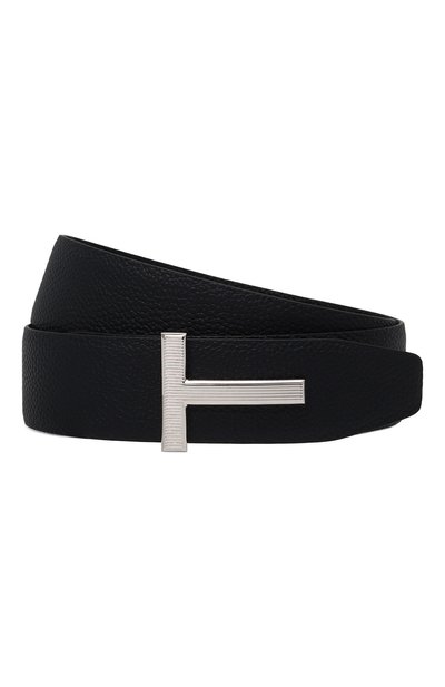 Темно-синий ремень средней ширины органично дополнит и джинсы, и формальные брюки. Акцентной деталью образа станет гильошированная пряжка в виде буквы Т из серебристого металла. Для изготовления аксессуара использовали мягкую зернистую кожу, которая меньше гладкой боится царапин и заломов.