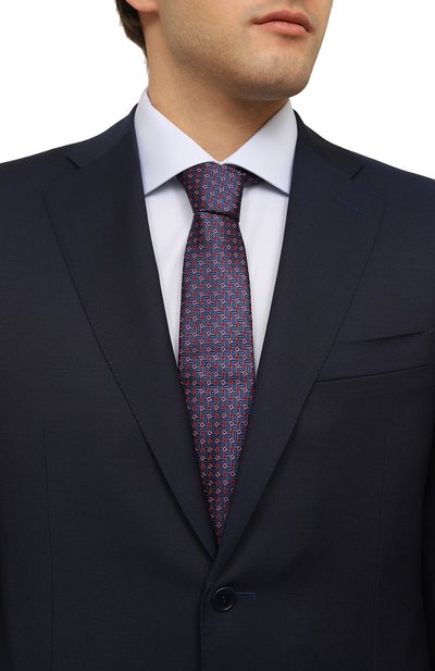 Темно-синему галстуку под силу разнообразить строгий деловой образ. Модель сшили из шелкового жаккарда, на котором сформировали регулярный цветочный мотив в бежево-коричневой гамме. Плотный текстиль с легким блеском хорошо держит форму красиво драпируется. Изделие без подкладки выполнили в традиционной технике «семь сложений», поэтому оно получилось пластичным и быстро восстанавливает форму после развязывания узла.