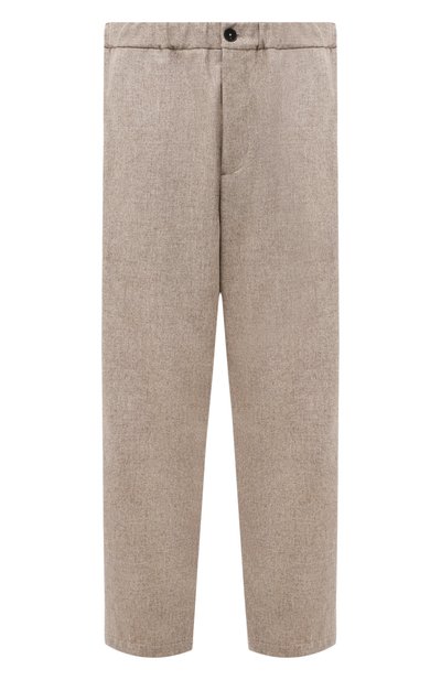 При пошиве бежевых брюк сделали ставку на свободный крой и заниженную шаговую линию. Свой вклад в создание комфорта вносит и эластичный пояс, отвечающий за удобную посадку. Мастера марки, основанной Джил Сандер, выполнили меланжевую модель из особенно мягкой шерсти первого пострига, которая поддерживает оптимальный микроклимат.