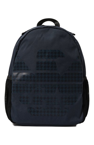 Для пошива темно-синего рюкзака мастера бренда использовали гладкий непромокаемый текстиль с деликатным шелковистым блеском. Переднюю панель украсили крупной эмблемой марки, в которую вписали клетку «гусиная лапка». Внутрь поместятся альбом формата А4, планшет и смарт фон, а для бутылки с водой сбоку предусмотрели сетчатые карманы.