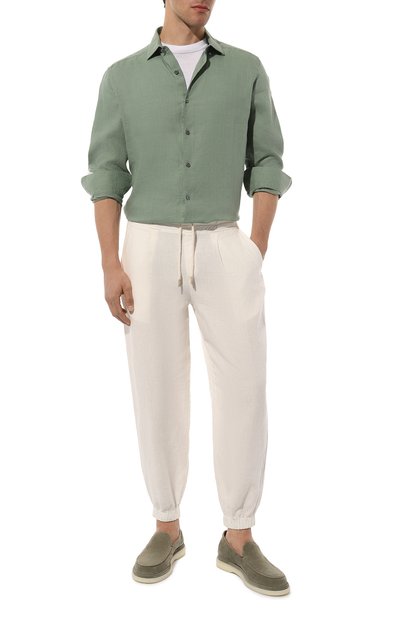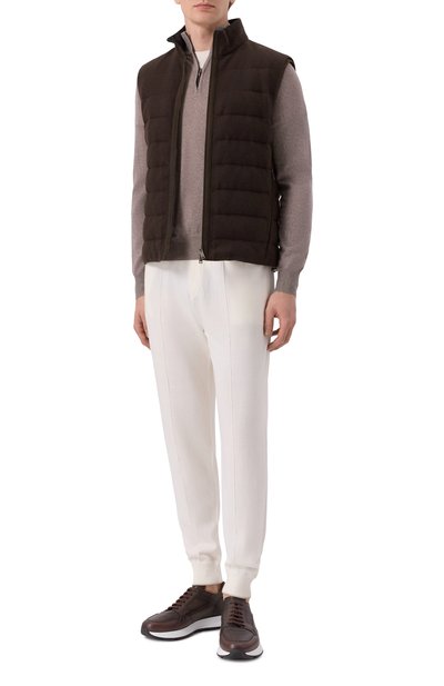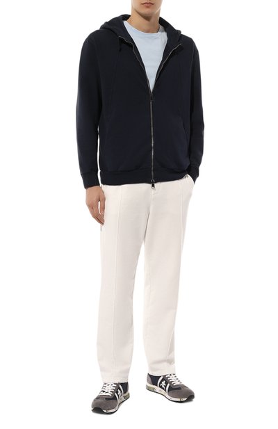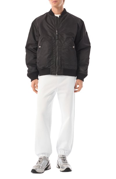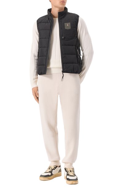 Белые джоггеры из мягкого хлопкового трикотажа не сковывают движения, хорошо пропускает воздух и не растягиваются со временем. Модель с тремя врезными карманами и широким эластичным поясом-кулиской украшена патчем с эмблемой марки. Предлагаем создать монохромный образ с со свитшотом и кроссовками в тон.
