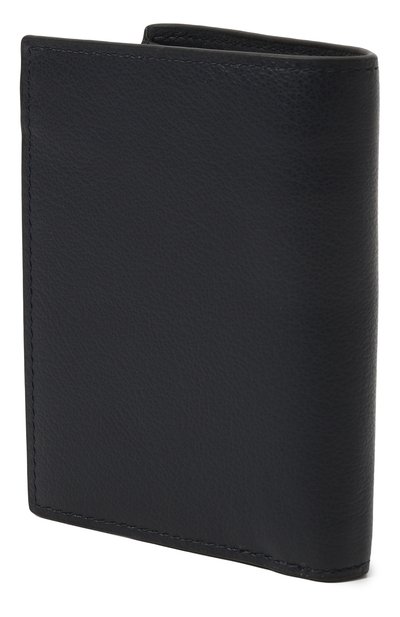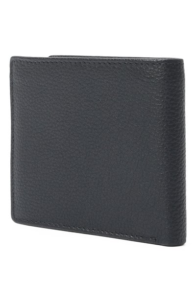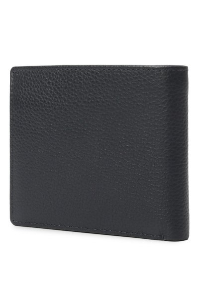Компактное портмоне мастера бренда выполнили из прочной бычьей кожи и декорировали темно-синим логотипом марки на передней панели. Материал с крупнозернистой фактурой устойчив к царапинам и заломам, поэтому аксессуар долго сохранит безупречный вид. Внутри — отделение для купюр и восемь слотов для карт.