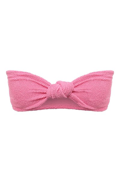 Для изготовления розового бандо с объемным узлом спереди мастера марки использовали фактурный быстросохнущий трикотаж на основе шелковистого прочного полиамида. Материал с эластичной структурой тянется, обеспечивая комфортную посадку по фигуре.