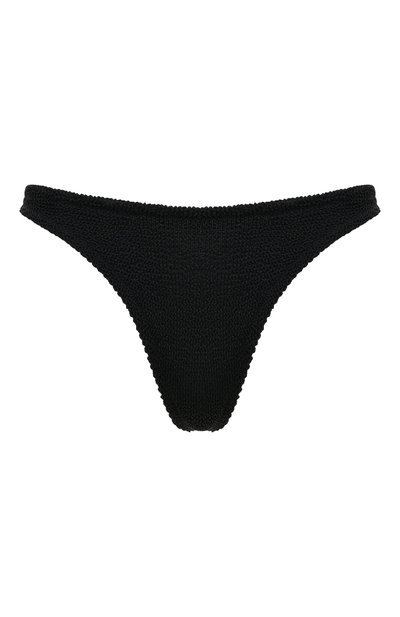 Черные плавки-бикини с низкой посадкой и плоскими незаметными швами выполнены из мягкого гофрированного материала. Он легко растягивается в нескольких направлениях, а изделия из него не сковывают движения, отлично пропускают воздух и быстро высыхают после намокания.