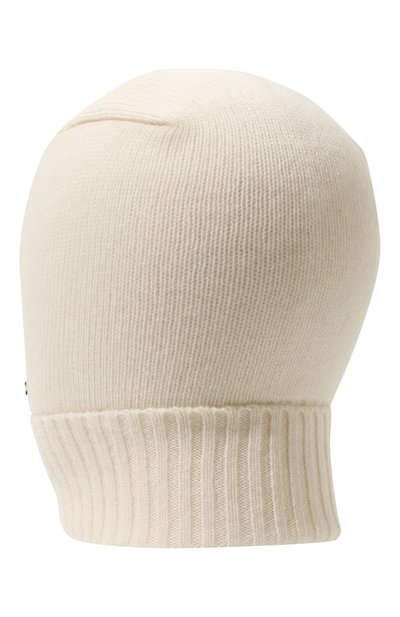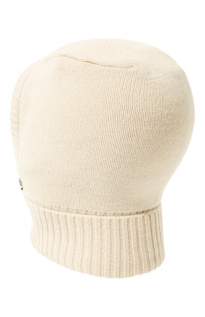 Белую шапку декорировали крупным помпоном, изготовленным из нежного меха уссурийского енота. Для производства самого аксессуара с широким отворотом использовали мягкий шерстяной трикотаж с добавлением кашемира. Такое изделие обеспечивает оптимальную терморегуляцию, сохраняя тепло и пропуская воздух.