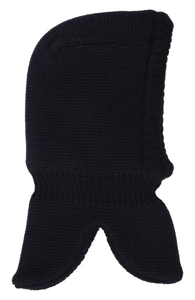 Темно-синий капор сделает прогулку в прохладную погоду межсезонья комфортной. Аксессуар из мягкой шелковистой шерсти хорошо удерживает тепло и не колется. Широкий рельефный воротник, заменяющий шарф, не пропускает холодный воздух внутрь.