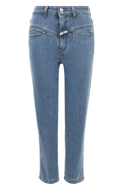 Слегка укороченные голубые джинсы с высокой посадкой мастера марки выполнили из дышащего органического хлопка с легким эффектом делаве. В состав ткани добавили стрейчевые нити, поэтому изделие будет комфортно садиться по фигуре и не сковывать движения. Модель декорирована брендированными нашивками на планке и поясе, а также надписями Pedal pusher на брючинах.