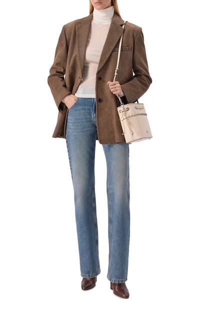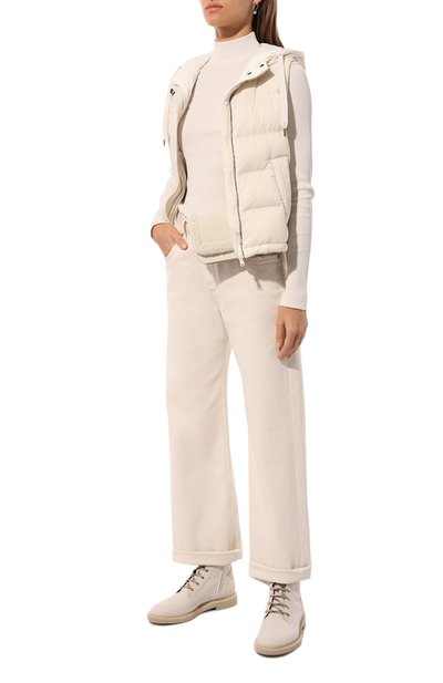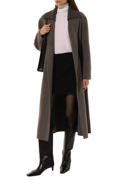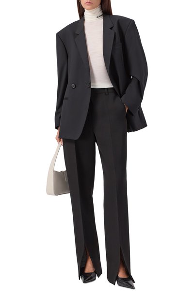 Водолазка прилегающего кроя сможет стать частью и повседневного, и офисного образа. Модель с немного смещенными назад плечевыми швами выполнили из трикотажа на основе мериносовой шерсти Extrafine.