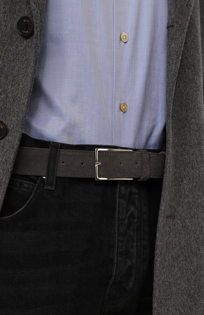 Для пошива ремня цвета хаки мастера марки использовали матовую крупнозернистую кожу. Фактуру материала сделали более выразительной, окрасив его разными пигментами. Модель застеги вается прямоугольной пряжкой, которую частично дополнили белой накладкой.