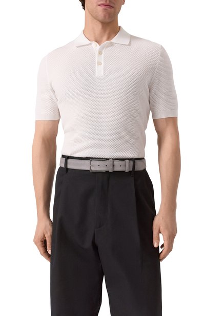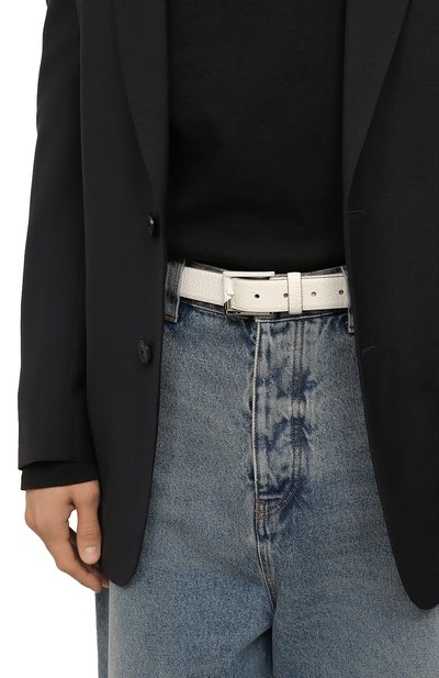 Для изготовления бледно-розового ремня использовали матовую крупнозернистую кожу, фактуру которой подчеркнули пигментами нескольких оттенков. Характерный для изделий бренда принцип деконструкции отразился в дизайне пряжки: ее покрыли эмалью лишь наполовину.
