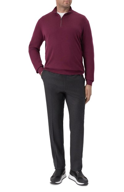 Слегка зауженные брюки темно-серого оттенка простились с формальной строгостью. Дизайнеры марки, основанной Брунелло Кучинелли, лишили модель стрелок и дополнили карманами, как у карго, а гладкую костюмную ткань заменили мягкой фланелью. Текстиль из нежной шерсти молочных ягнят удерживает теплый воздух и превращает изделие в отличный вариант для прохладной погоды.