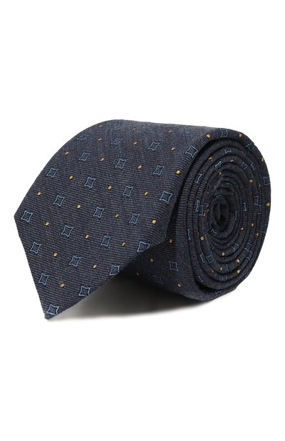 Команда марки адаптировала этот синий галстук для прохладных сезонов при помощи материала. Для пошива модели с рельефным геометрическим узором использовали мягкую матовую ткань из нежного кашемира. Чтобы сделать аксессуар прочнее, в состав нитей добавили гладкий шелк.