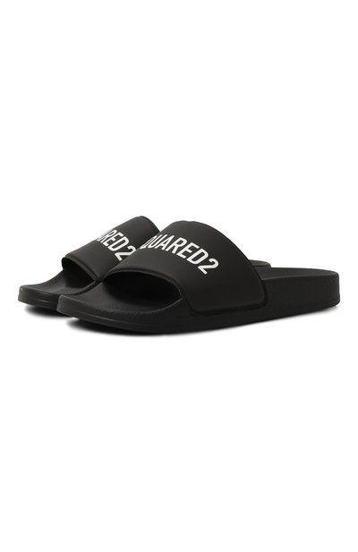 Шлепанцы с формованной стелькой выполнили из матового полимерного материала. Широкую перемычку модели украсили контрастным логотипом марки.